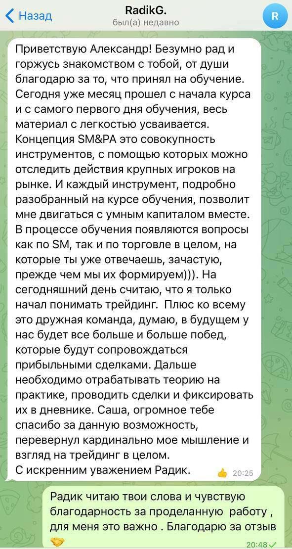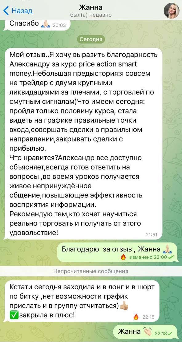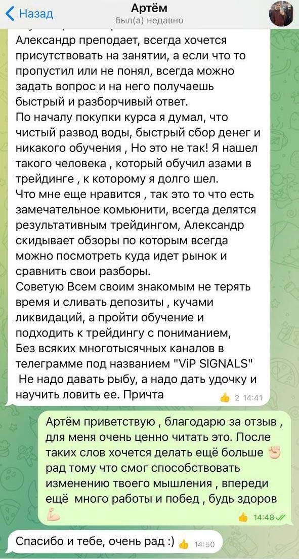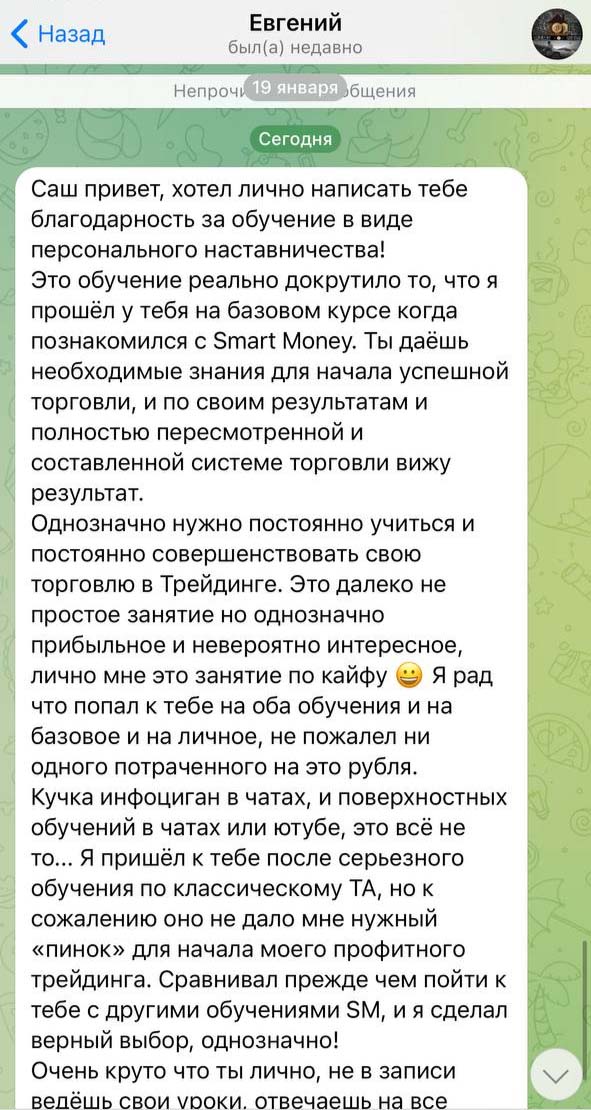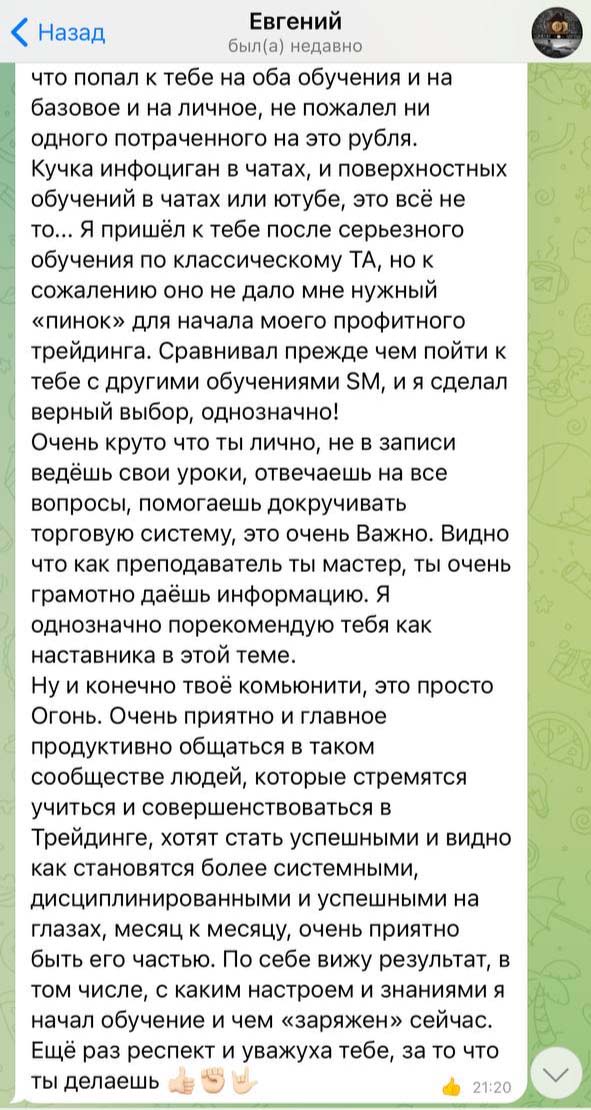 Отсутствие обзора собственных сделок и сетапов, которые использует сам ментор